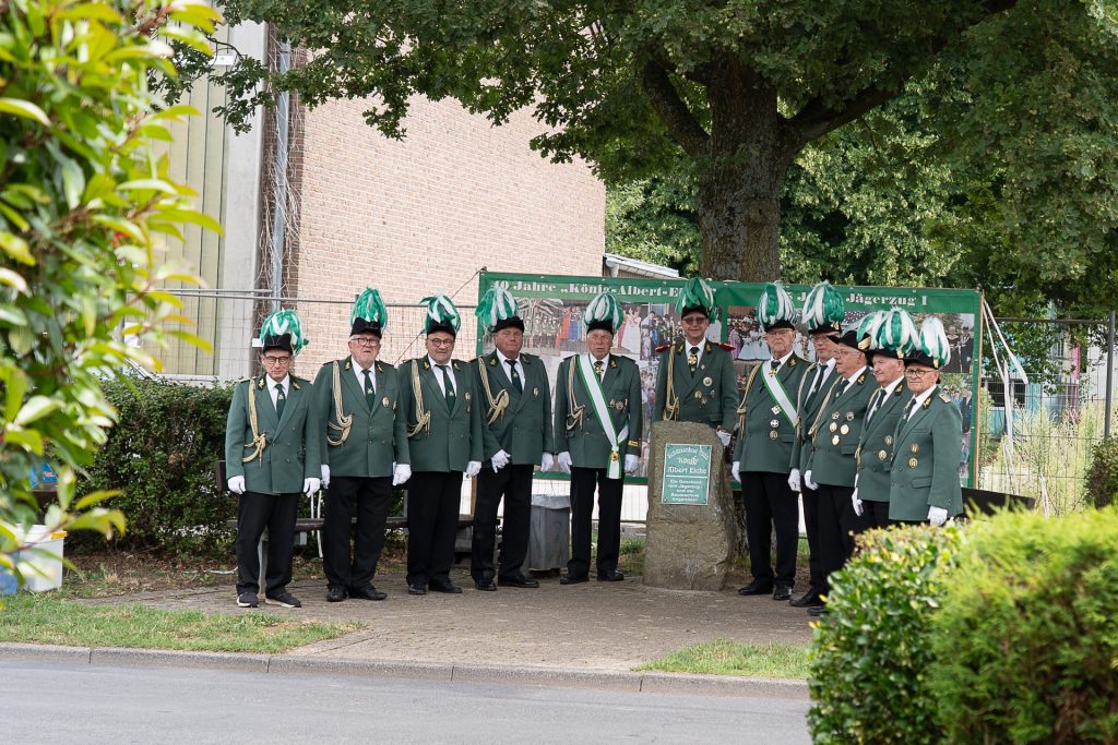 Zugleich erinnerte man an 40 Jahre „König Albert Eiche“. Vor vier Jahrzehnten war Jägeroffizier Albert Gruteser Schützenkönig. Anlässlich seiner Regentschaft stiftete und pflanzte der Jägerzug1, dank Hans-Werner Angendohr, eine junge Eiche – heute ein stattlicher Baum.
