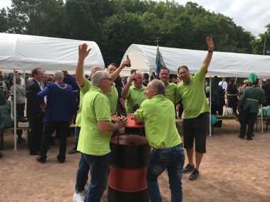 Zum Schützenfest im Jahre 1993 traf sich die Nachbarschaft Kindt/Kindter Str. um für König Heinz-Josef Engels und seine Minister Karl-Heinz Bäumges und Norbert Bäumges zu kränzen. Es gab viel zu tun, da das Dreigestirn komplett in der Nachbarschaft wohnte. Man traf sich in der Halle bei Engels und schon beim Kränzen fanden die „Nicht-Schützen“ Spaß am Marschieren. Männer und Frauen marschierten immer wieder, manchmal nur auf melodischer Begleitung durch die Stimmen der Anwesenden. Beim Kränzerball wurde ebenfalls marschiert, es wurde ein tolles Schützenfest gefeiert und zum Abkränzen hatten sich Gertrude Teeuwen und Christa Vieten etwas Besonderes einfallen lassen: